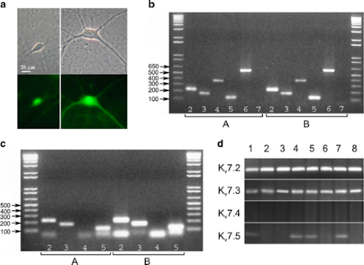 Метод полімеразної ланцюгової реакції із зворотньою транскрипцією для виявлення експресії генів певних субодиниць іоних каналів в цілому гіпокампі, в культурі нейронів гіпокампа і в поодиноких інтернейронах культури клітин гіпокампа та гангліозних клітинах сітківки (Grigorov еt al., 2014).