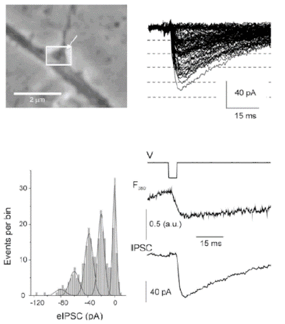 Електрофізіологічні дослідження синаптичної передачи методом “patch-clamp” в конфігурації “ціла клітина” в режимах фіксації потенціалу або струму з використанням методу позаклітинної стимуляції поодинокого аксона пресинаптичного нейрона або поодинокої пресинаптичної терміналі.